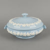 WEDGWOOD White On Blue Embossed Queens Ware Round Covered Serving