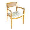 Vintage Cane Back Teak Chairs With Blue Stripe Upholstery  Set of 4
