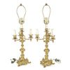 PAIR Gilt Brass Three Arm Converted Candelabra Lamps