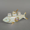 BIRKS PORCELAINE D"ART Fish Stand With Salt Pepper & Mustard Set 6 Pieces