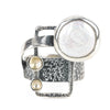 Request Price Sterling Textured Bezel Set Button Pearl Modernist Ring